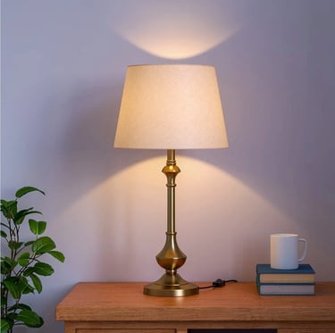 Elevate your interior design with the Divine Trends Brass Antique Table Lamp. This lamp is designed with a sleek and minimalist design and is made of antique brass. It features a 10-inch.