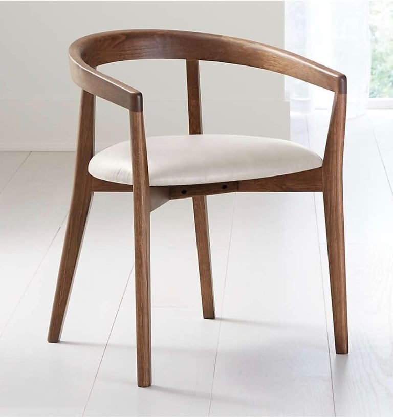 LSFH Unique Design Stone Round Back Dining Chair Accent Chair Armchair with Solid Teak Wood Frame, Cream